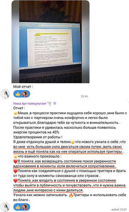 С сессии девушка ушла с “вдохновением, интересом и внутренней уверенностью” (см. видео-отзыв ниже)